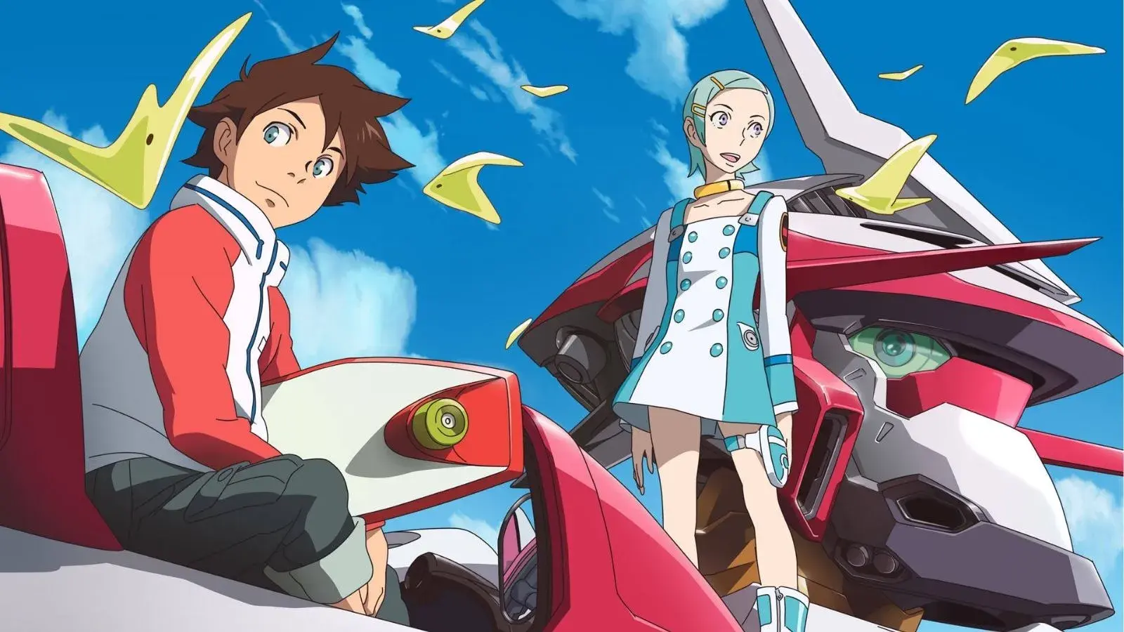 Featuring themes of love, coming-of-age drama, and environmental harmony, Eureka Seven is a vibrant mecha anime that follows a teenager named Renton Thurston, who joins an outlaw group called Gekkostate out of a desire for adventure. Upon meeting a mysterious girl named Eureka, who pilots the bio-mechanical robot Nirvash, Renton is entangled in a larger conflict involving Scub Coral, government forces, and humanity’s survival.