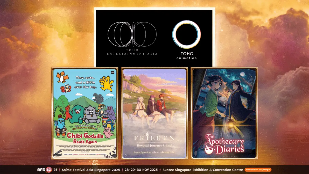TOHO Animation: Special anime showcases and visuals for fans! You can also collect exclusive memorabilia for titles such as SPYxFAMILY, Frieren: Beyond Journey's End, The Apothecary Diaries, and Chibi Godzilla Raids Again, as well as upcoming titles such as Though I am An Inept Villainess and Snowball Earth.
