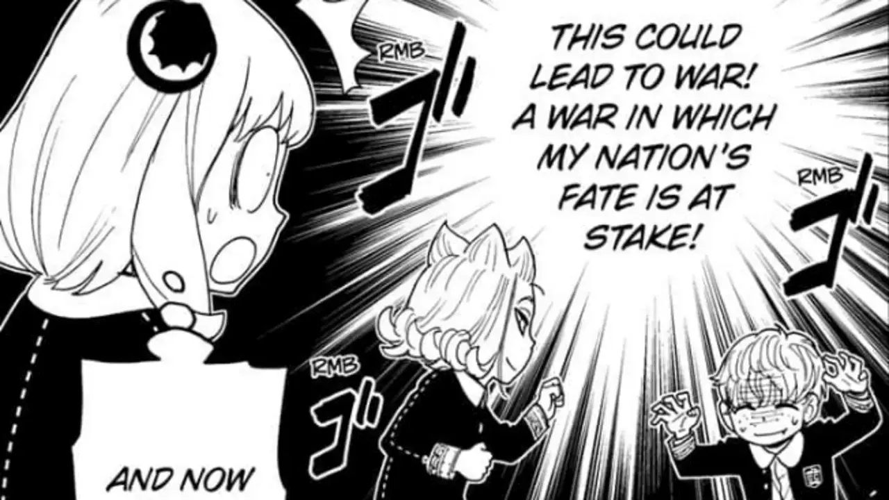 The chapter begins with Loid trying to wake Anya up to go to school, and her refusing. After all her lies about being sick are countered by her father, she agrees to go to school. This is mostly because she wants to learn more about Donovan Desmond from Damian. At school, she meets Becky and Damian. Anya suddenly tells Damian that her father was a monster this morning and asks how things are with his father. He gets flustered and yells at her after remembering he hasn’t seen his father after having the family dinner.