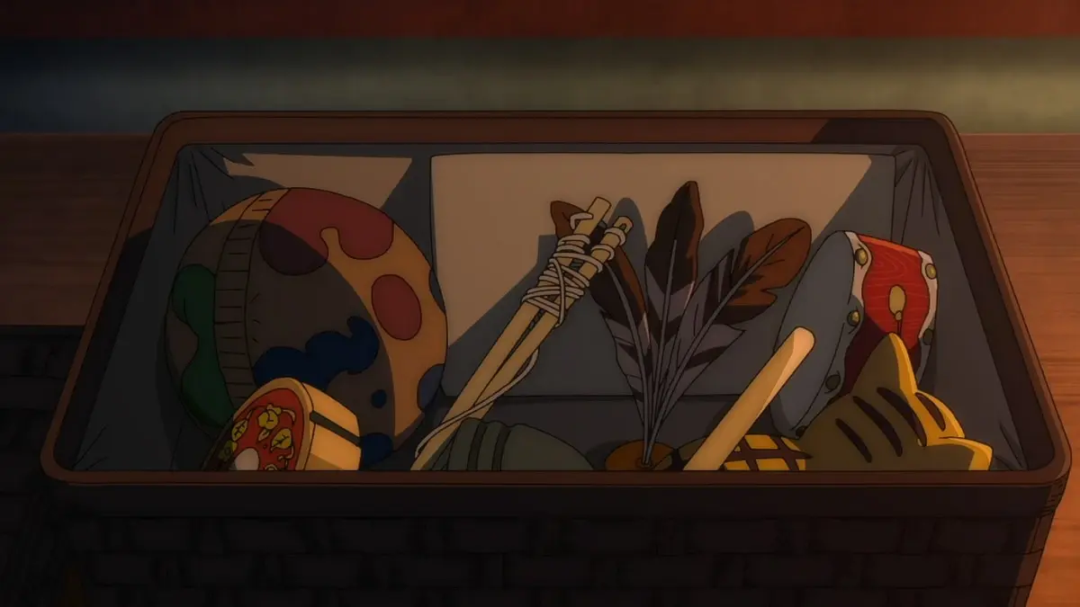 In this episode, Maomao receives permission to enter the room where the emperor died, allowing her to properly investigate the mystery surrounding his death. While waiting for approval, she stays at Jinshi’s residence, where she stumbles upon a box of his childhood toys. According to Suiren, these were hidden from him to prevent him from growing too attached.