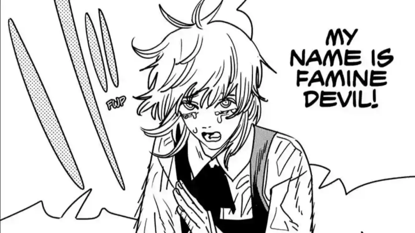 She then said that she was the one who absorbed life and saved people from suffering, revealing that she was in fact one of the four horsemen: Famine Devil, but she asked the other devil to call her Fami! Before she could say anything else, the deformed Chainsaw Man asked whether she’s not the Death Devil. Famine tried to say something about the Death Devil, but suddenly, a voice called ‘Falling’, and the two devils dropped to the ground. The Falling Devil, in a chef’s hat, asked if she could take their order. A person standing on top of the school building said ‘Chef’s choice’. We finally see the person’s face, and it’s the old Fami that fans know and love.