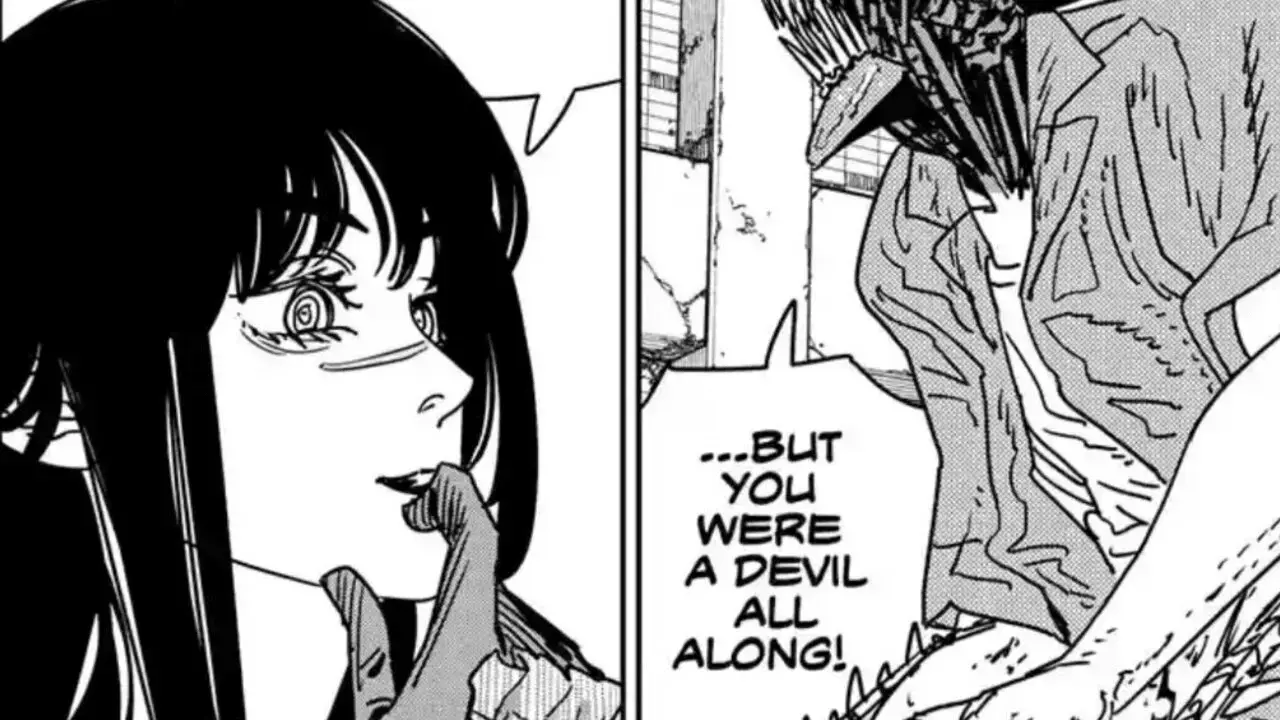 The previous chapter of Chainsaw Man manga focused on Denji and Asa. However, our protagonist didn’t notice the change on her face when her body was once again overtaken by Yoru. When the Fake Chainsaw Man attacked them, Denji had fought him. But when a sudden dangerous situation arises, Yoru shows her true colours as a Devil.