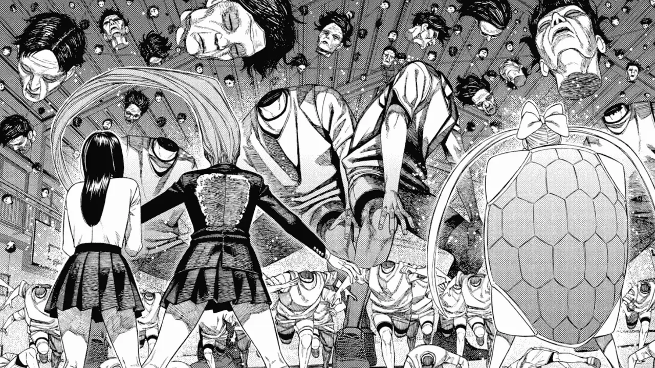 She says that Murakami, the gym teacher, went through the social media of students and found the girls who were breaking school rules. He then forced them to take revealing pictures of themselves and started blackmailing them. Kouki thinks he might have also given other girls similar knives as her. The girls decide that as long as they can find Murakami and defeat him, they can get out of the gym. But suddenly, the floating heads seem to get bigger and the walls start to close in. Mai reveals that since Rin is a newbie, she can only sing at full power for five more minutes. Aira tells Kouki to have the pygmies look for Murakami while they take care of the Yokai. However, the final panel shows that Murakami is not in the gym and he’s keeping an eye on them through cameras while being somewhere else.