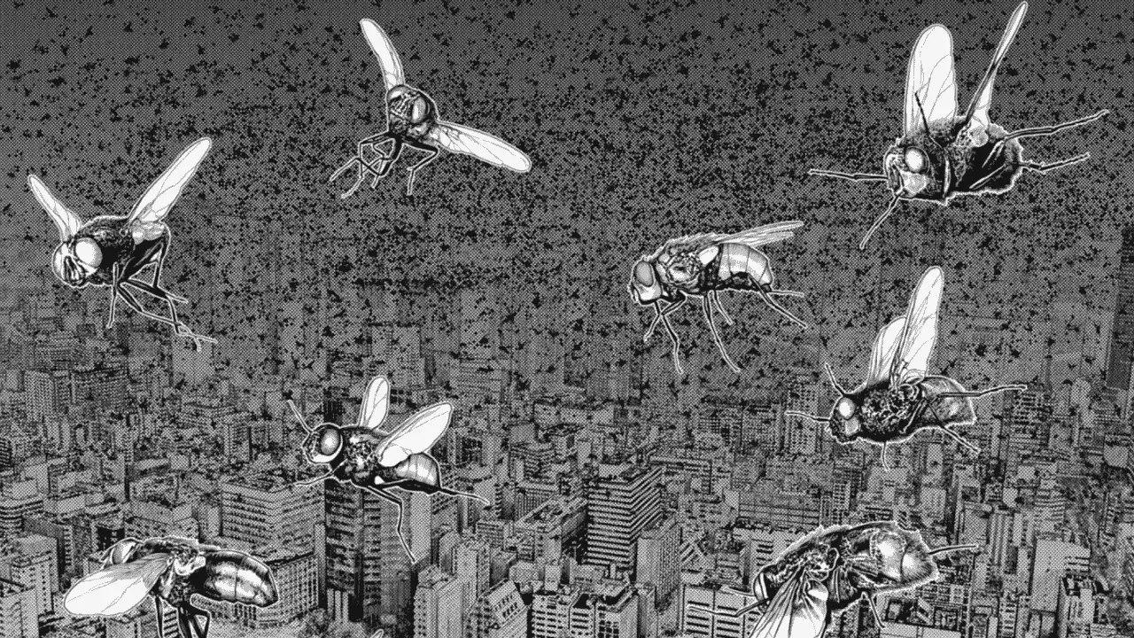 Finally, Kouki remembers the feeling of playing freely and her tremendous talent finally does its job. The music stuns everyone in the gym. Aira asks if Rin’s power is amplified by this, but Mai says that her power is not related to Rin, and not even to the pygmies. The final spread of the chapter shows millions of flies across the city’s sky.