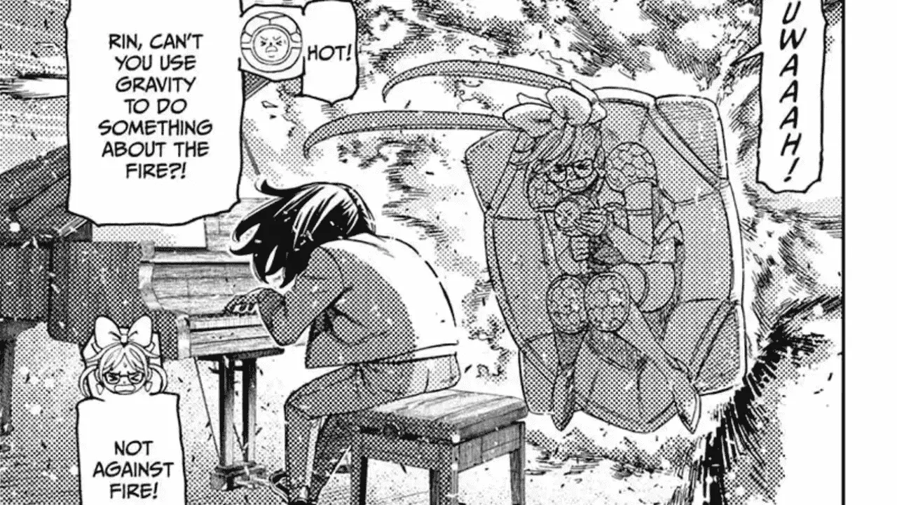 It seems that we’ll see how Rin deals with her new powers in the next chapter, while Kouki plays the piano in her fly outfit. It’s likely that the muscular bald-spot man will also reveal his abilities soon.