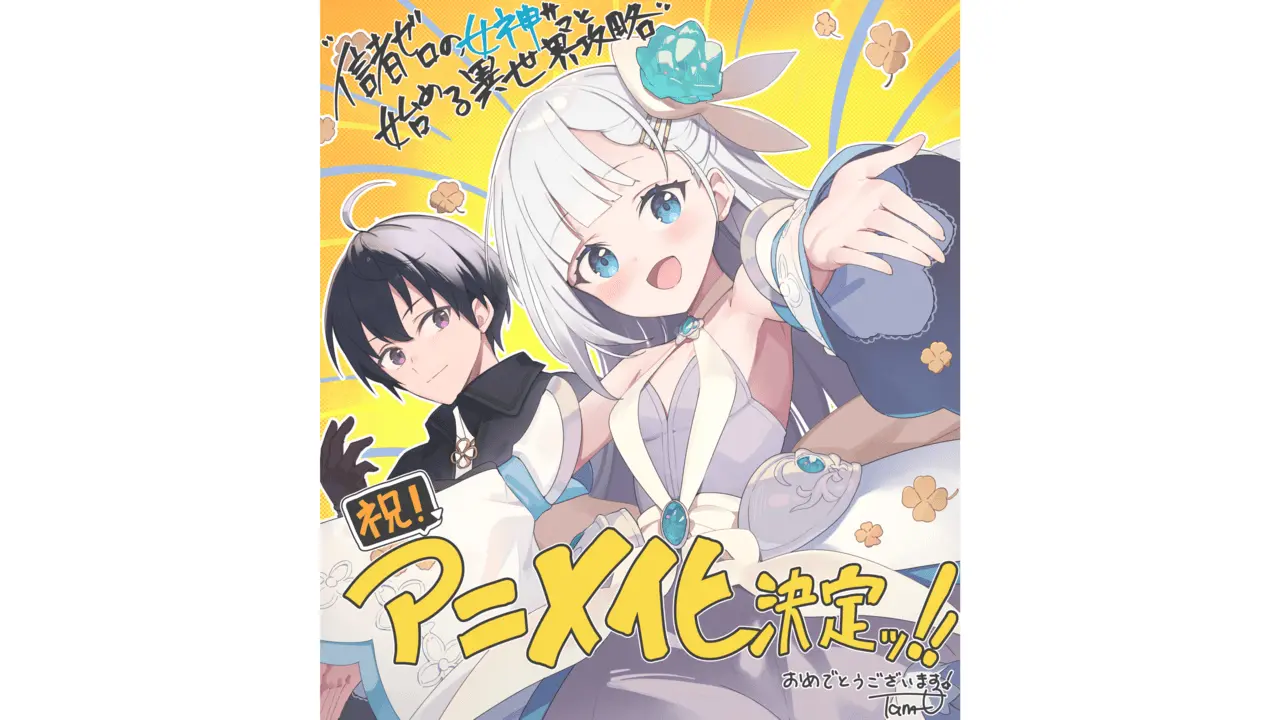 Isle Ōsaki’s light novel series “Full Clearing Another World under a Goddess with Zero Believers” is getting an anime adaptation! The news was announced during the Overlap Bunko All-Star Gathering Special 2026 Part I livestream that took place on Sunday, 11 January, 2026. Unfortunately, no release window for the anime has been announced yet.