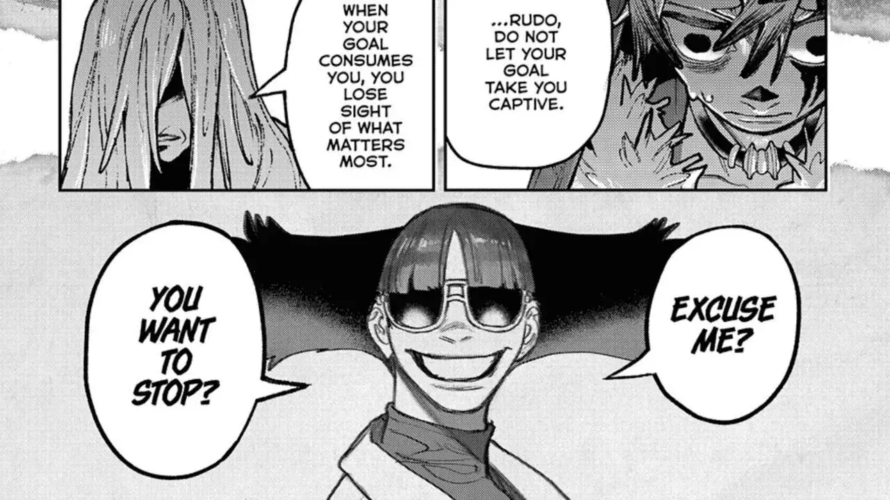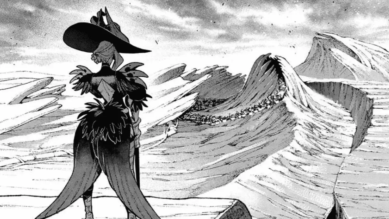 For Lily, her ignorance was a shield. Gountess wanted to protect her, and that’s why he never told her anything, not even about the Doll Fest plot. Unfortunately, he got greedy and talked to her Choker once. Although she left before she learned anything of value, there’s no telling what Mymo might do to her. He begs Rudo to help them, and the protagonist promises to take care of it. Rudo comes back to the real world and his power causes a rift to appear in the ground. In the final panel, we see Lily standing on top of a small plateau, looking at a strange formation in the distance.