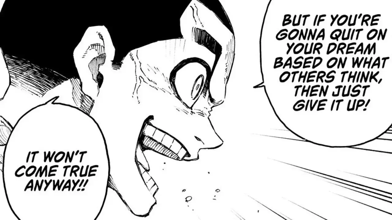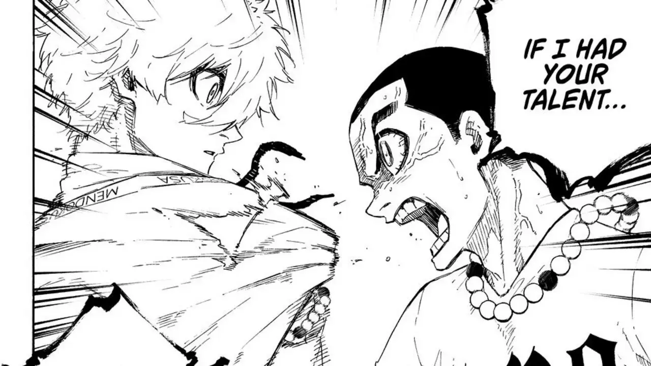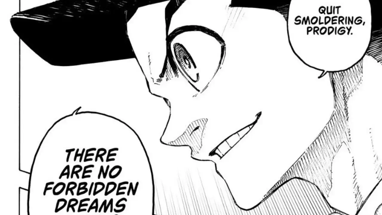 Nagi answers that he wasn’t surprised. Igaguri says that he felt frustrated but happy. His main goal while coming to Blue Lock was to become a football player and get a salary offer so he didn’t have to work in the temple. When it came true, he was satisfied with that. He asks if Nagi was satisfied. Nagi mulls over the question and answers that sometimes you have to give up on things even if you’re not satisfied. But Igaguri says that there is no limit on dreams. His dream of becoming a pro player was big enough for him to wager his life on it, but not big enough to become the world’s best. He left Blue Lock satisfied, but Nagi is different. He tells Nagi to quit smoldering, as there are no forbidden dreams in the world.