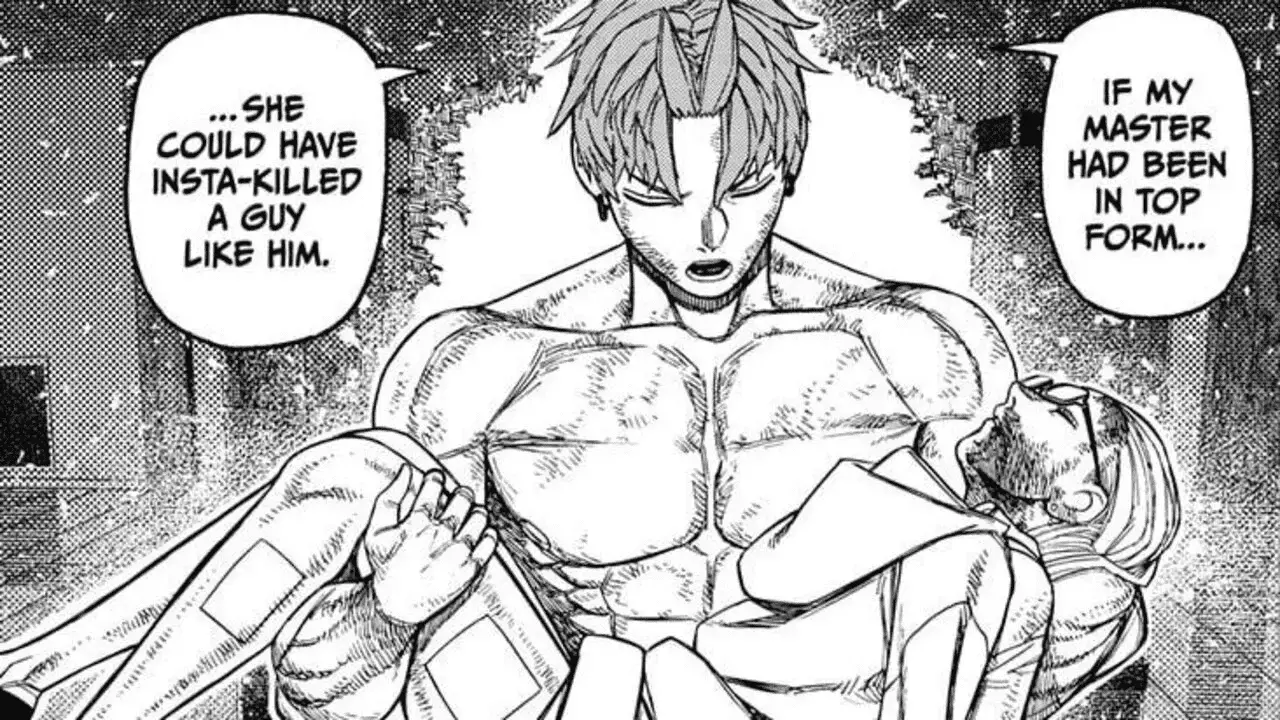 However, Jiji uses his Evil Gun to stop Germain’s body from dispersing into smoke. When he uses his Evil Gun to hold Germain tight, it takes him some time to turn into smoke again. Jiji tells the villain that the woman he was standing on was the one who said she’ll make him her family, so he shouldn’t stand on her like that. Then he pulls all his strength together to punch Saint Germain out of the building. Jiji turns around and scoops Seiko’s unconscious body into his arms. He says that if his master had been in top form, then she could’ve taken down the evil man easily.