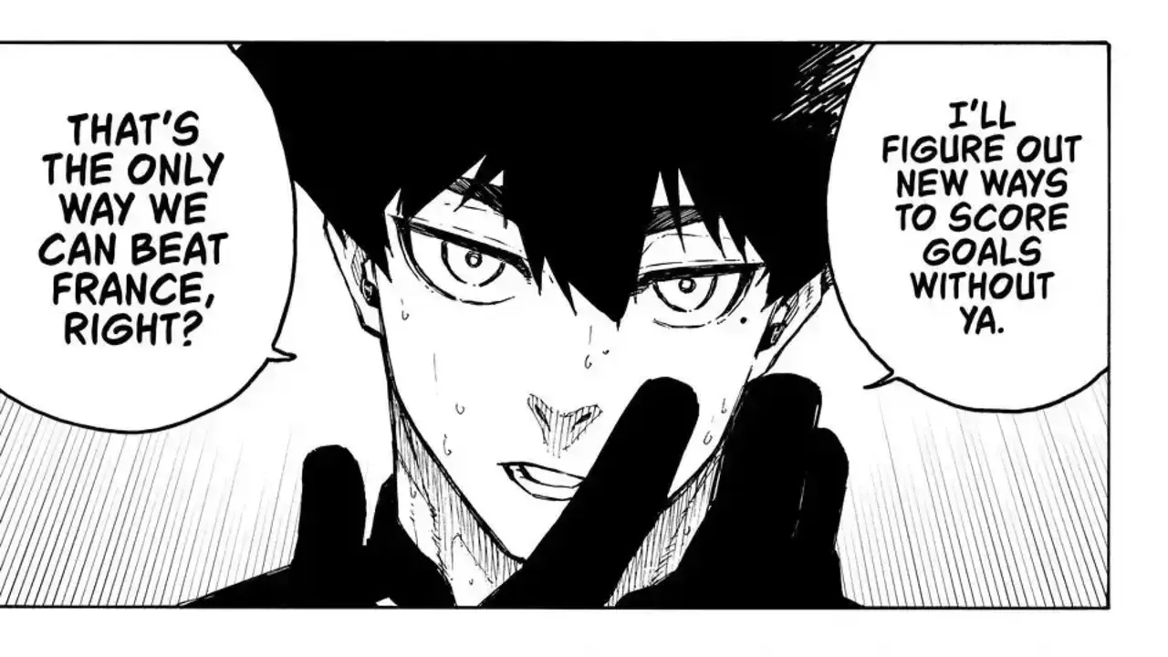 This makes Karasu angry and he points out that unlike Isagi, at least he’s trying to change for the betterment of Blue Lock. Isagi then points out that what's bugging him is Karasu doing this for Blue Lock, as doing anything besides playing for yourself is not the way of the egoist. He says that all of them are trying to become the world’s best striker, and Karasu deviated from that philosophy because of what Hugo said. Now he’s prioritising the team’s victory as the ‘second best’. But that’s not the Blue Lock way.