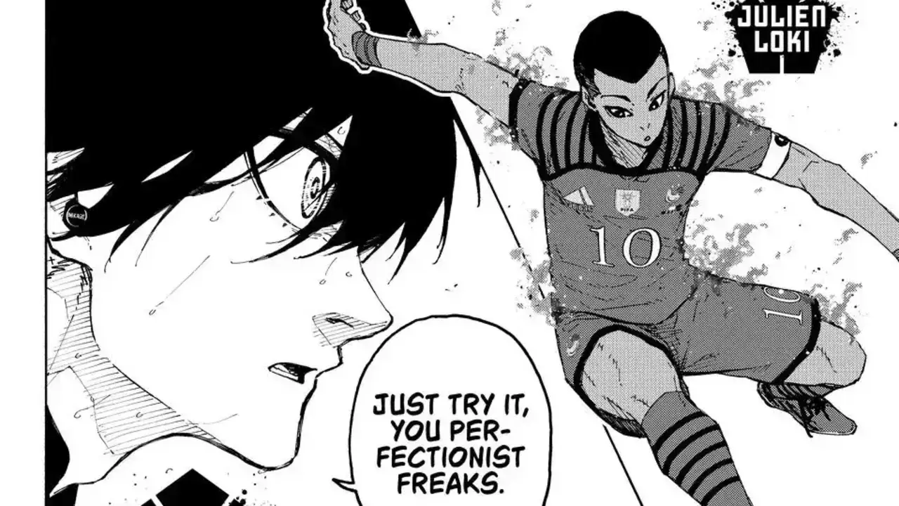 The captain Oliver Aiku then interrupts the two and says both of them are right in a way. Since Karasu’s new method brought results, and the egotistic mentality is important two, he suggests they use both to score goals. Karasu says that it’s fine by him, but it looks like it’s time for Blue Lock to change. The French players are excited now that Blue Lock is fighting back. Hugo promises to keep leading this field toward its destiny. The match begins, and Rin faces Loki head on. Both of the strikers are hungry for a goal.
