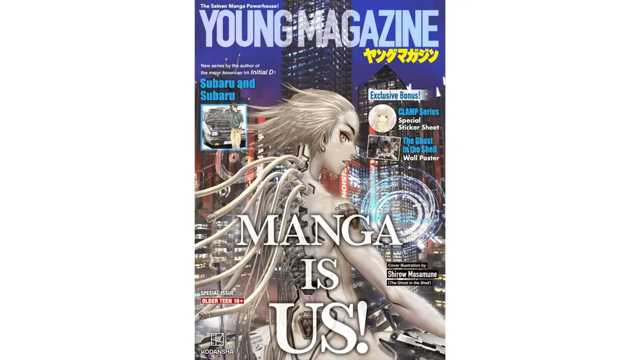 On Tuesday, 15 July, 2025, Kodansha revealed some more details about the upcoming release of the United States print of their Weekly Young Magazine. The special edition magazine is being released to celebrate the 45th anniversary of the magazine, and will include a total of 19 new manga series from various Japanese artists. Ghost in the Shell creator Masamune Shirow designed the cover for the special edition.