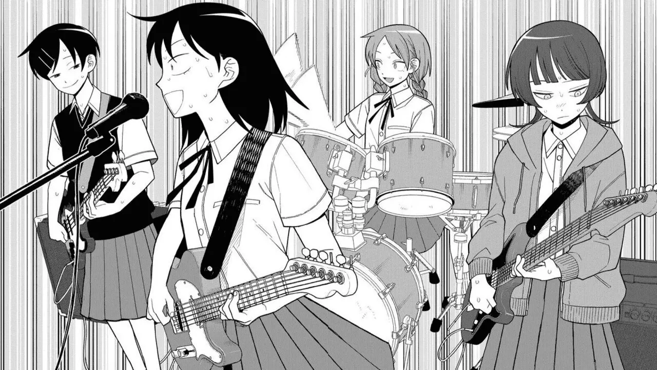 Unfortunately (or fortunately) for Chihiro, things are not as easy as they first seem. She sucks at guitar, and the first band they form within the club falls apart quickly. But one day, her bandmate and bassist Rin Koyama catches Chihiro singing her soul out. Instead of laughing at her intense belting, Rin ends up completely devoted to Chihiro, and thinks that she is a god that needs to transcend beyond a mere high school band.