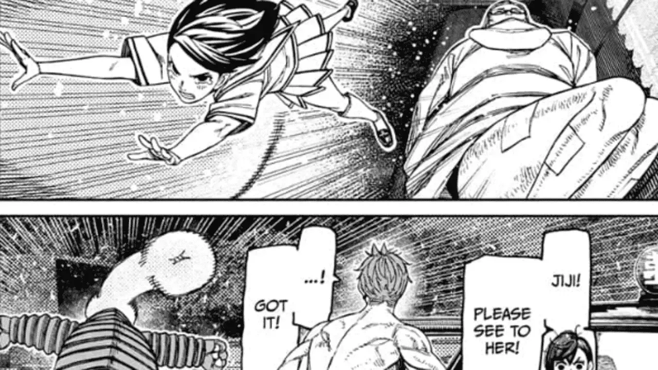 After Jiji defeated Saint Germain in the previous chapter to rescue Seiko, the focus shifted to Vamola and Momo on the other floor. We saw how deftly the two girls defeated the ninjas, and even the Chameleon alien. After they meet up Seiko and Jiji in front of the taxi, the group decides to leave and go to the shrine. But as the latest chapter of the Dandadan manga revealed, there’s something massive (literally) standing in their way.