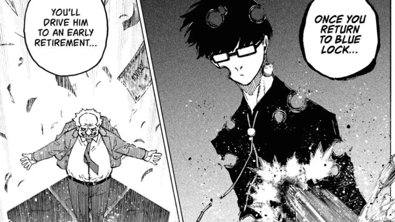 Firstly, Nagi will have to win the selection the JFU Chairman planned. Secondly, Buratsuta will take over the management of all his contracts and basically own his football career. Lastly, when he goes back to Blue Lock, Nagi will have to prove that Ego’s methods were wrong, so that Buratsuta can fire him and become the boss of Blue Lock. However, Nagi surprisingly refuses. He says that Ego, the person who created Blue Lock and made sure Nagi could play with people like Isagi and Reo isn’t wrong. Buratsuta points out that Ego is heartless and Nagi basically became a stepping stone for the other players. But Nagi counters by saying that Blue Lock is filled with passion and he can never betray that institution. Buratsuta says that he’s too prideful.