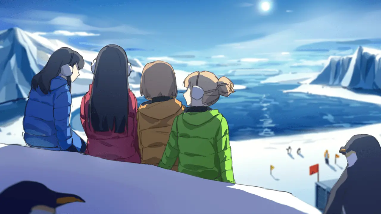 Unlike Ruri Rocks, A Place Further than the Universe is not entirely educational. The main character Mari is a high school student who wants to go on a life-changing adventure. Her friend Shirase wants to go on an expedition to Antarctica to find her mother who was an Antarctic observation crew member and went missing during her last trip. Along with two other friends, Mari and Shirase leave for Antarctica and the viewer gets to enjoy a different view of nature than we are used to.