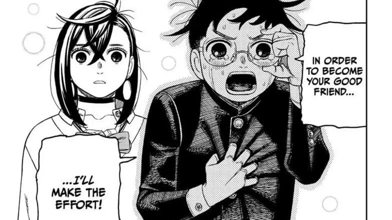 After a long time, we got a sweet and heartwarming chapter in Yukinobu Tatsu’s Dandadan manga. As readers already know, Momo has lost her recent memories after being brought back to her normal size. But even though she has forgotten them, Okarun resolves to befriend her like she had done with him before. But for an introvert like Okarun, talking to a popular girl like Momo is harder than fighting with aliens.