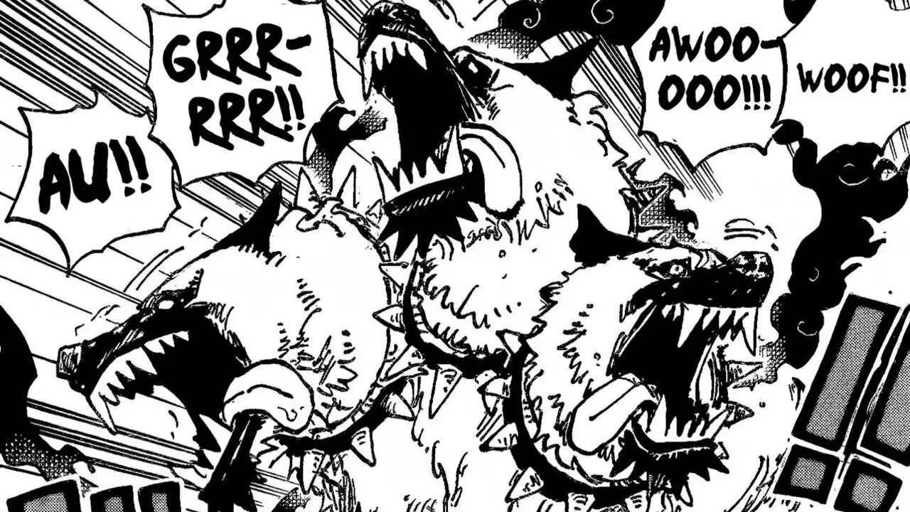 The chapter begins with the now-injured Loki asking Shamrock about his similarity with Shanks. The Celestial Dragon answers that Shanks is his younger twin brother. Although Shanks had been to the Holy Land once, he seems to prefer the filth of the lower world. Loki promises to kill both brothers once he gets out of the chains that bind him. Shamrock is angry about being threatened and calls forth his sword. Once he calls Cerberus, a three-headed dog, with a massive blade emerging from each mouth comes out from the sword. The massive dog goes to attack Loki but stops suddenly when Gunko says that they need to move after hearing something. However, Shamrock still sics the dog on Loki before leaving and tells him to come find him if he survives this.