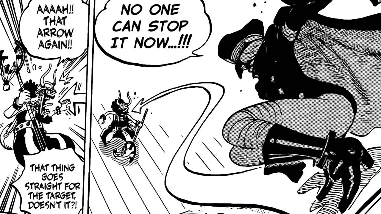Usopp then uses his slingshot weapon to blow Gunko’s upper body into smithereens, but she regenerates immediately. She unleashes another arrow and says that it’s impossible to stop it. As she attacks them, Gunko unveils that a massive war is coming. And which side the giants pledge their alliance to will decide the fate of the world. The Straw Hats realise that the Holy Knights have kidnapped the Elbaph children to make sure the giants do their bidding.