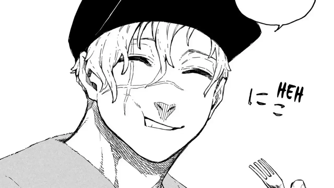 Isagi says hello to the man and is shocked to see a big scar on his face. He asks for the name of the dish, but the other man doesn’t understand him. Isagi offers him one part of his translation earbuds and wears the other. After that, when Isagi asks the name of the dish he’s eating, the man answers with ‘Auedif’ and describes it as Paella with pasta. He asks about where Isagi’s from, and the boy answers that he’s from Japan and he’s here to watch football. When the man asks if he likes football, Isagi says that he loves it and describes how he’s learning more about the game every day. The man says that he’s happy Isagi has something to be so excited about. When the protagonist asks if he also has something like that, the man says he might have once. But now, watching someone get excited like Isagi makes him wanna die.