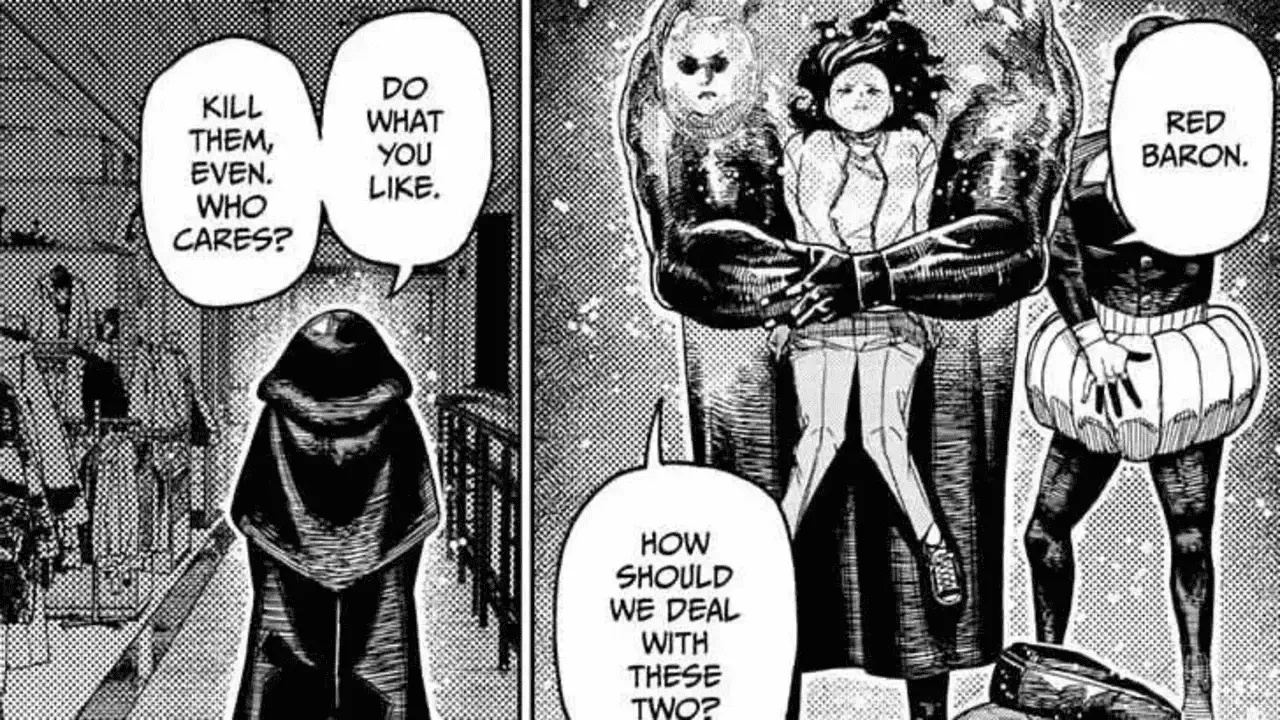 In the previous chapter of Yukinobu Tatsu’s DANDADAN manga, we saw how Red Baron and his lackeys captured Rin and Kouki. In the recent update, the villains were able to successfully extract their powers from them using a Kozuka knife. But before Jack Wisp and Vakappa can torture and kill the girls, all three villains feel the great urge to go to the bathroom.
