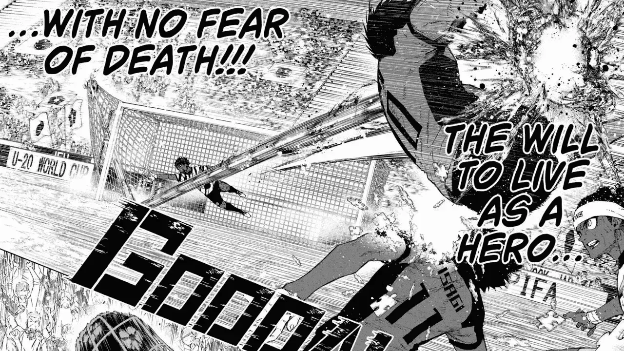 Rin passes the ball to Bachira, and Jinpachi Ego urges these strikers to hunt down their prey as heroic hunters. Bachira’s shot is stopped by a Nigerian player, but Hiori immediately attacks next. When that’s also rebuked, Chigiri shoots his shot, and Onazi is barely able to stop it. The ball goes up in the sky and Rin realises that labels like ‘brother’, ‘rival’, and ‘world’s best’ are just impediments that he needs to destroy to make his hunger for self destruction his default setting. Bachira gets the ball and realises that Rin has entered beast mode.