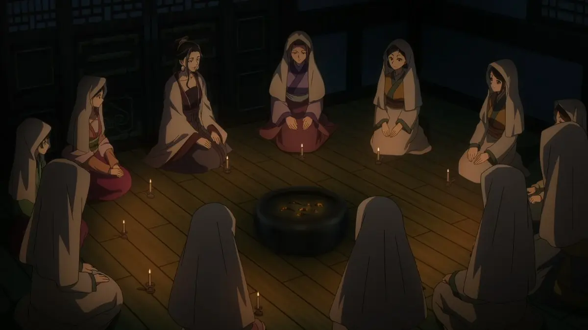 Finally, the beautiful older woman who welcomed them shared her story. Before she began, Maomao noticed something odd—she mentioned that there would be thirteen tales told that night, yet there were only twelve women in the room.