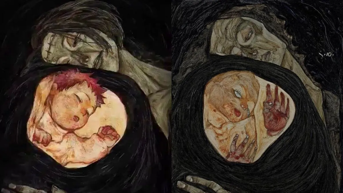 Besides the painting literally referencing Yuji’s dead mother, Kaori, the art that is inspired by Egon Schiele’s enigmatic “Dead Mother I” doesn’t stray far from the original piece’s intent.