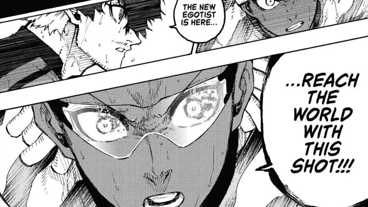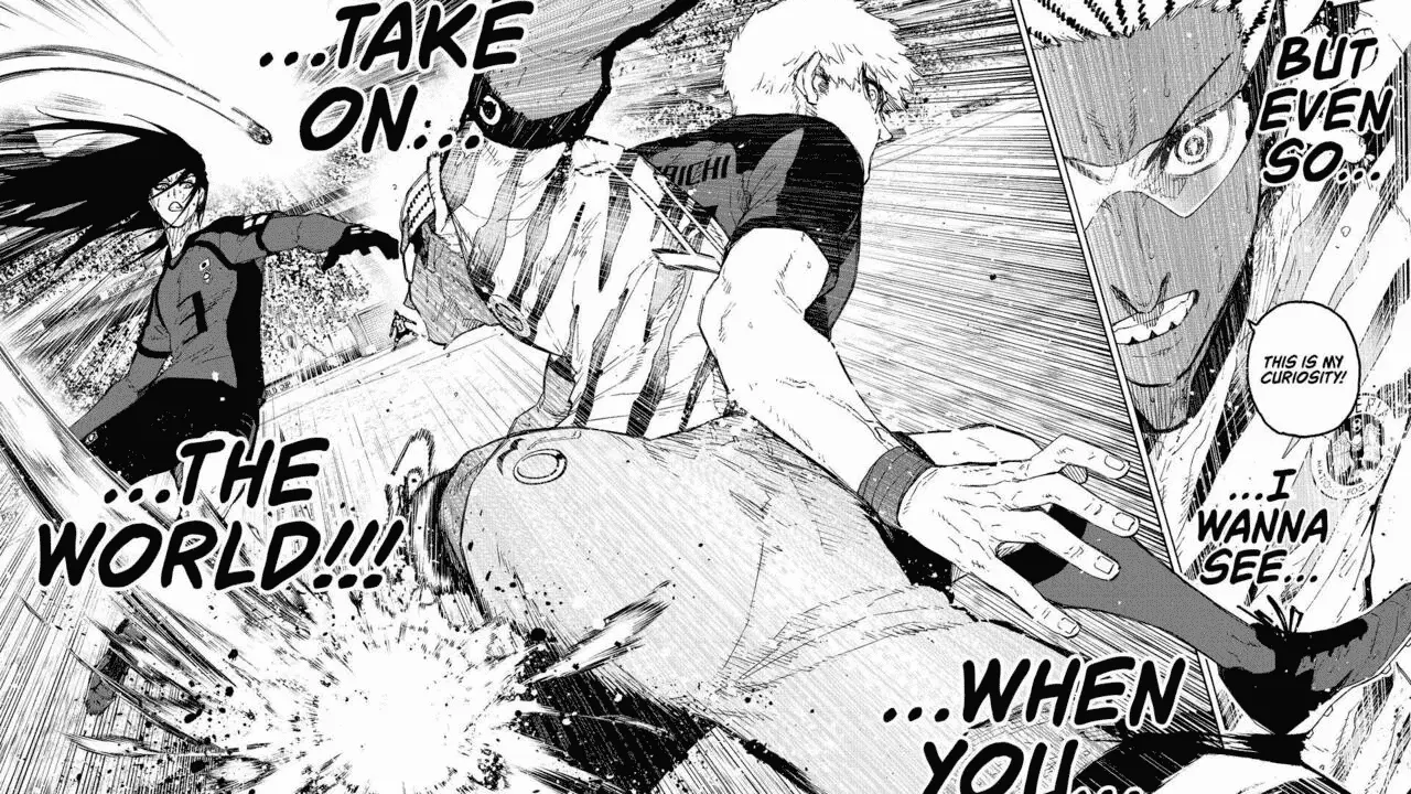 The chapter begins with Isagi finally getting the ball and heading for a counter. Onazi remembers Isagi telling them that his ego grows from the curiosity in himself and wonders if he can do the same. Isagi taunts the Nigerian players by telling them to surpass his brain and Blue Lock if they want to be the world’s best. Oliver asks Isagi if it’s a good idea to try and pump up their opponents when Ego asks them to keep Nigeria’s score at 0. Isagi answers that if one of them awakens, he will be able to experience a new form of football. And if he is able to adapt and stop the egoist, then Blue Lock will evolve further. Oliver wonders just how greedy Isagi is.