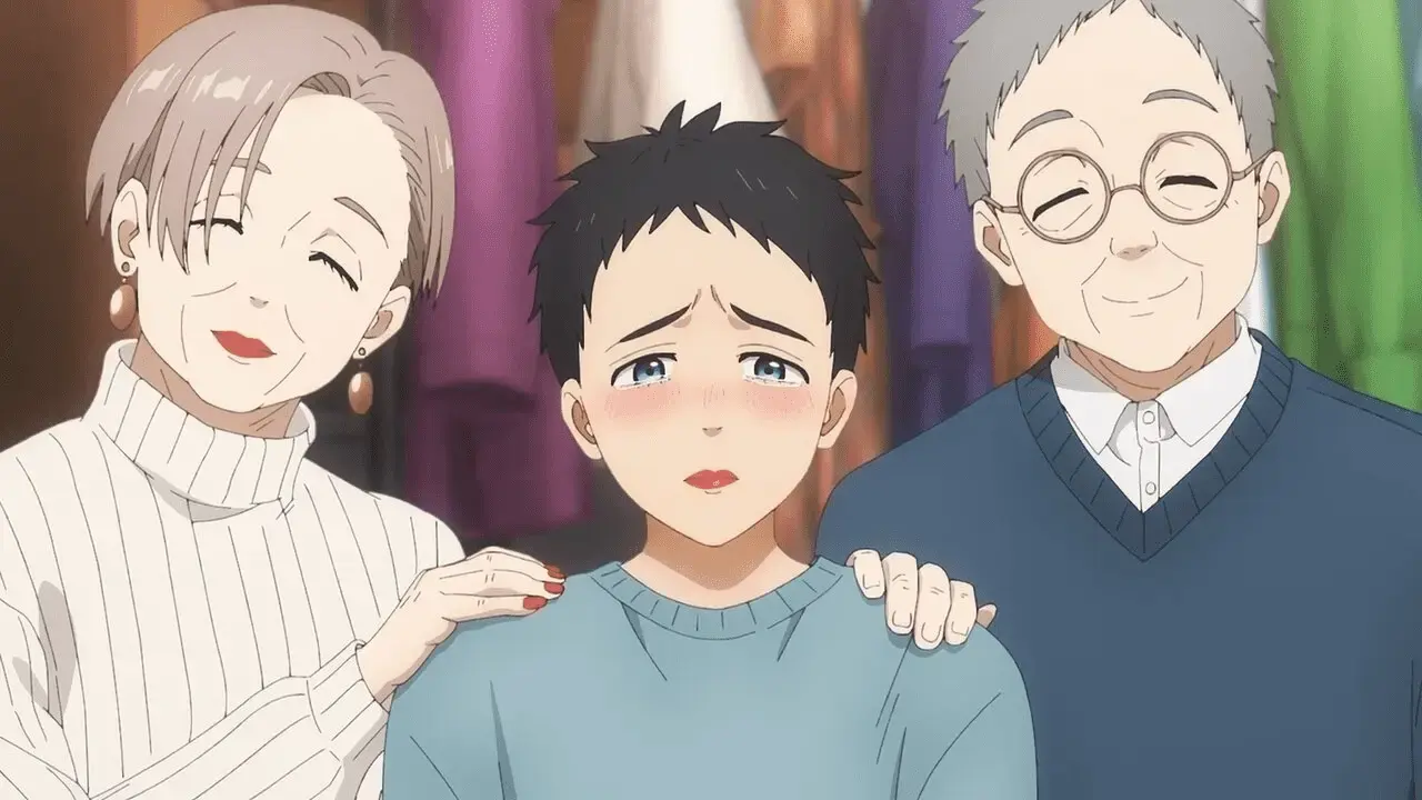 The anime episode opens with Tsubaki taking Sakura, Suo, and Nirei to an old man’s house. We learn that this man named Ito-san, recently lost his beloved wife. Both him and his wife were very fashionable, however, it seems after losing his partner, the old man isn’t interested in dressing up anymore. Although he appears cheerful as the boys help him with household chores, we can’t help but think that he’s hiding a deep heartache. After they leave, Tsubaki tells everyone how the couple became such an important part of their life.
